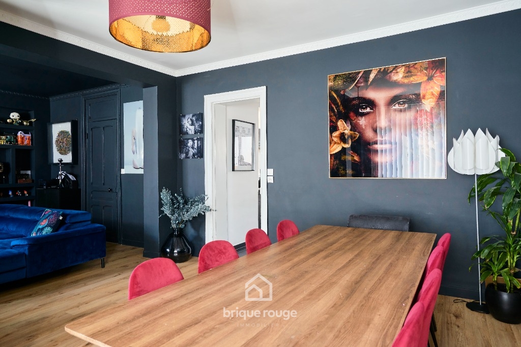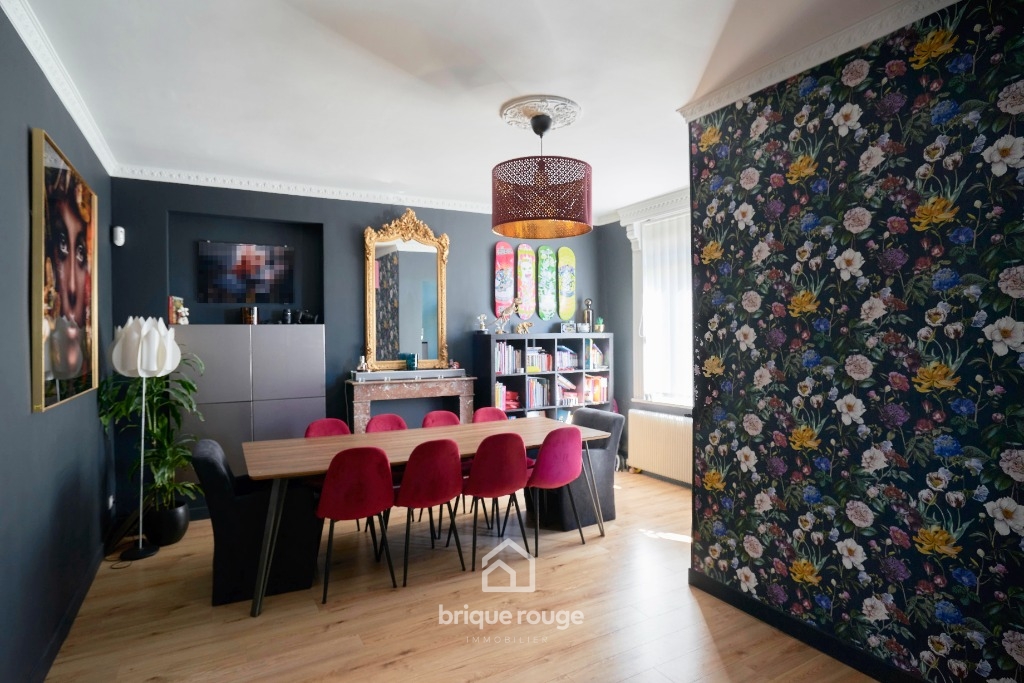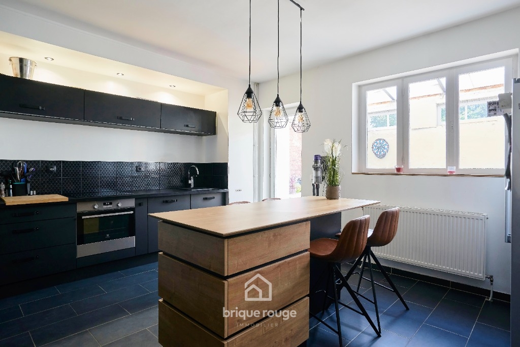 Charmante double distribution rénovée avec soin ! A découvrir chez Brique-Rouge Immobilier cette charmante double distribution entièrement rénovée avec soin. Sur le secteur prisé de Salomé, proche de toutes commodités et axes routiers vous pourrez découvrir cette jolie rénovation composée comme suit : Au rez-de-chaussée un joli hall d'entrée qui dessert la belle pièce à vivre de plus de 40m², lumineuse avec sa belle hauteur sous plafond, alliant le charme de l'ancien et du moderne et donnant accès à sa cuisine entièrement équipée récente de près de 20 m². Une grande Salle de bains, un WC et une buanderie complètent ce niveau. A l'étage: 4 belles chambres non mansardées ainsi que la possibilité d'aménager les combles pouvant offrir un agrandissement non négligeable. Les + : Grand garage de 30m² . Une visite s'impose !