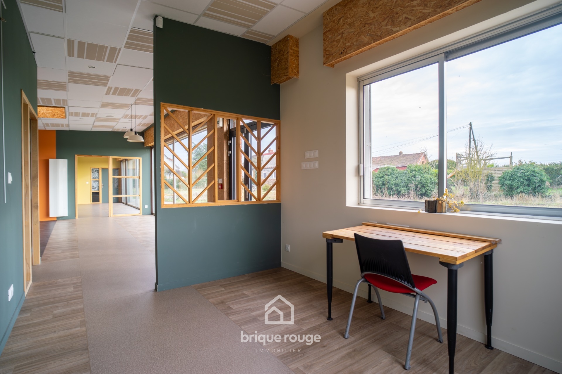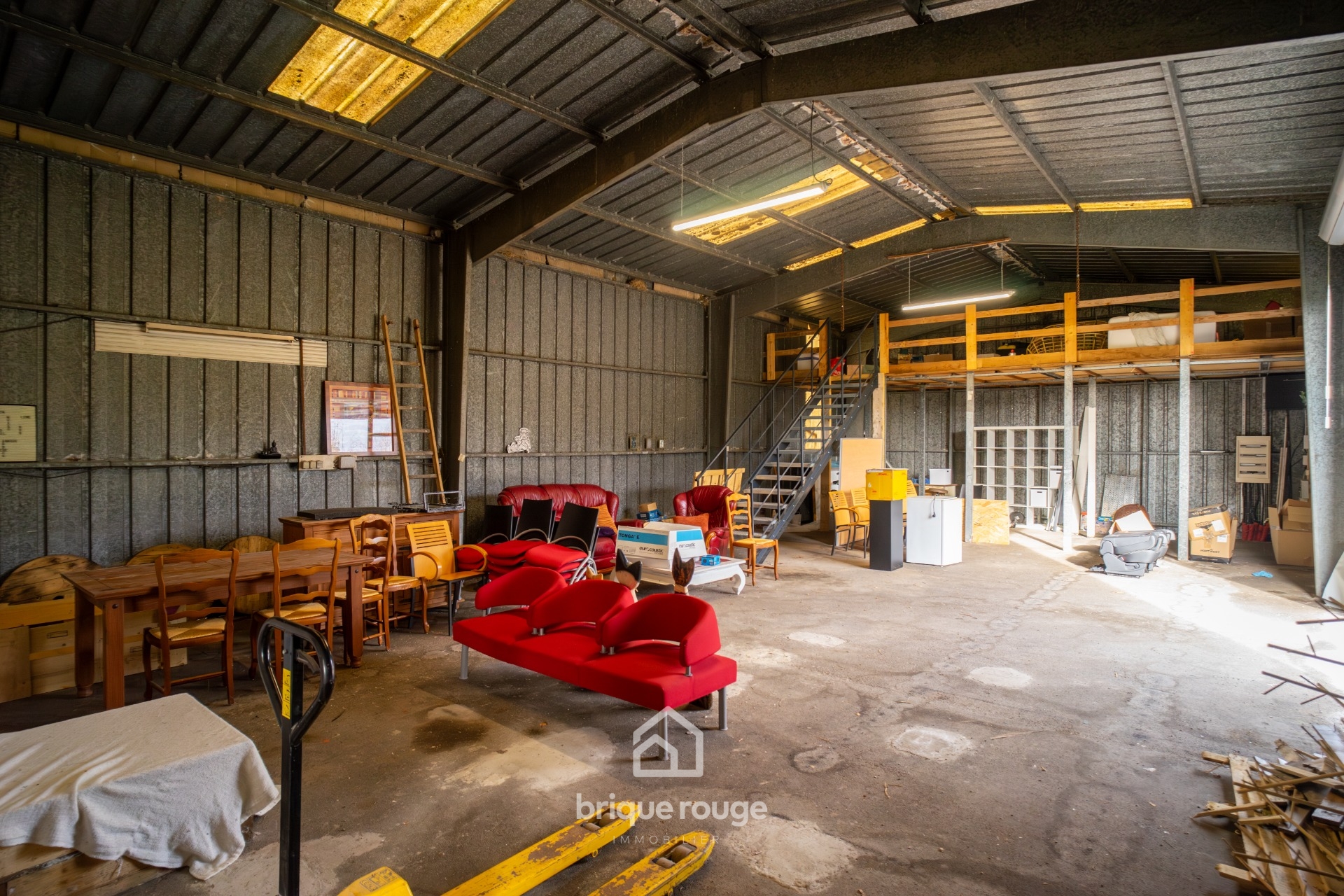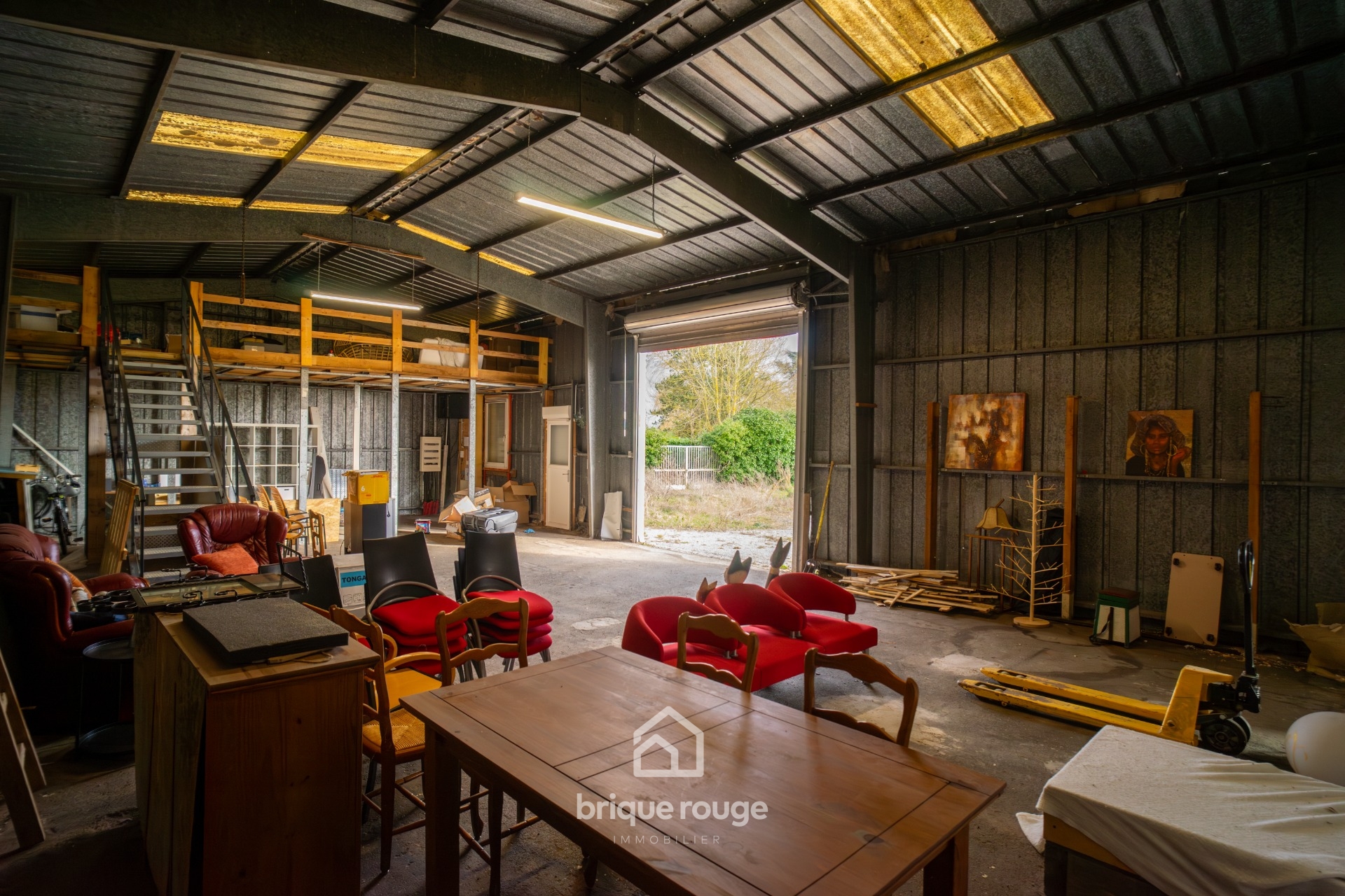 Découvrez cet ensemble immobilier unique, offrant un grand potentiel, bâti sur un terrain de plus de 5 000m², il bénéficie d'accès sur 2 rues. Il comprend une habitation de plain-pied individuelle aux normes PMR, dont la disposition très fonctionnelle présente de très beaux volumes. Une entrée distribue une vaste cuisine entièrement équipée de plus de 40m², un spacieux séjour, deux chambres (actuellement aménagées en salle d'attente et salle de travail), un bureau et un ensemble sanitaire comprenant une double vasque et des toilettes indépendants, ainsi qu'une salle de douche. L'ensemble est extrêmement lumineux et bénéficie d'une exposition sud-ouest. De plus, un hangar de 210 m² est divisé en deux parties, dont l'une dispose d'une mezzanine de stockage, ainsi qu'une grande ouverture avec une porte motorisée d'une hauteur généreuse. Un parking complète cet ensemble.